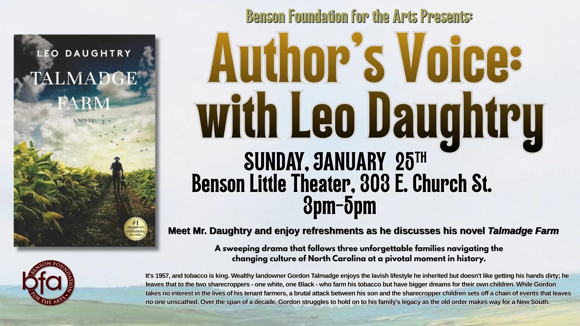 Meet Mr. Daughtry with refreshments as he discusses his novel Talmadge Farm.